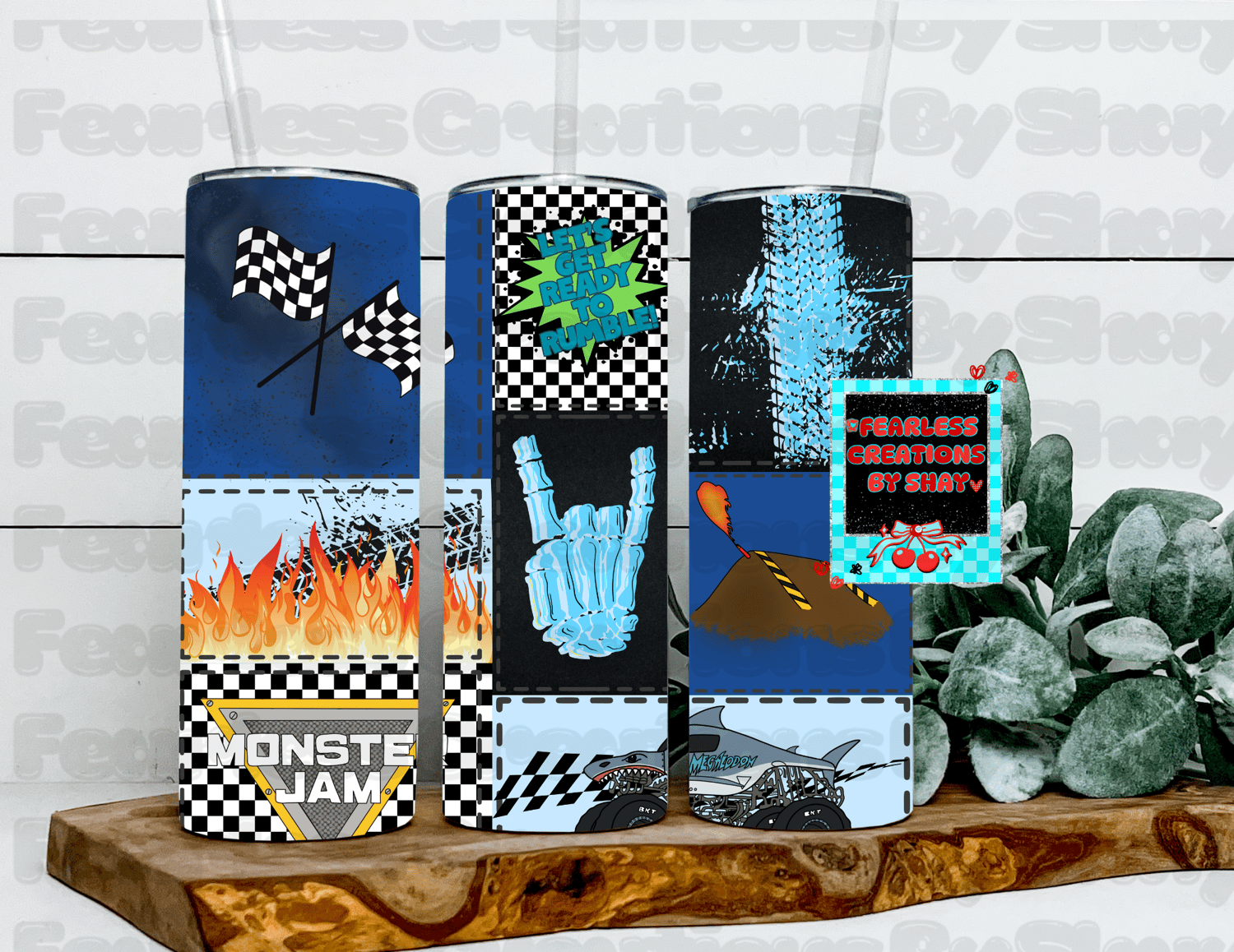 It holds 20 oz of your favorite beverage; has a plastic lid and comes with a reusable straw.
