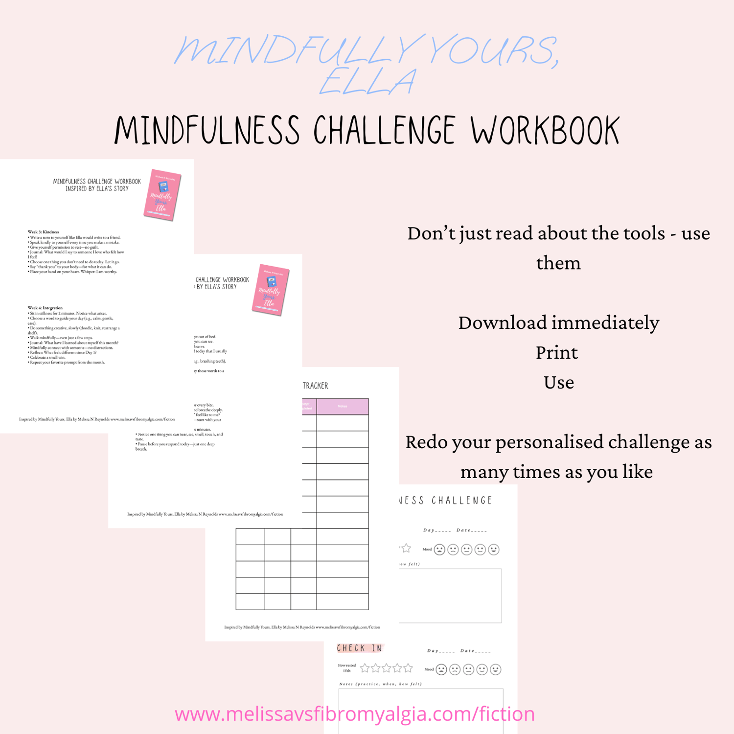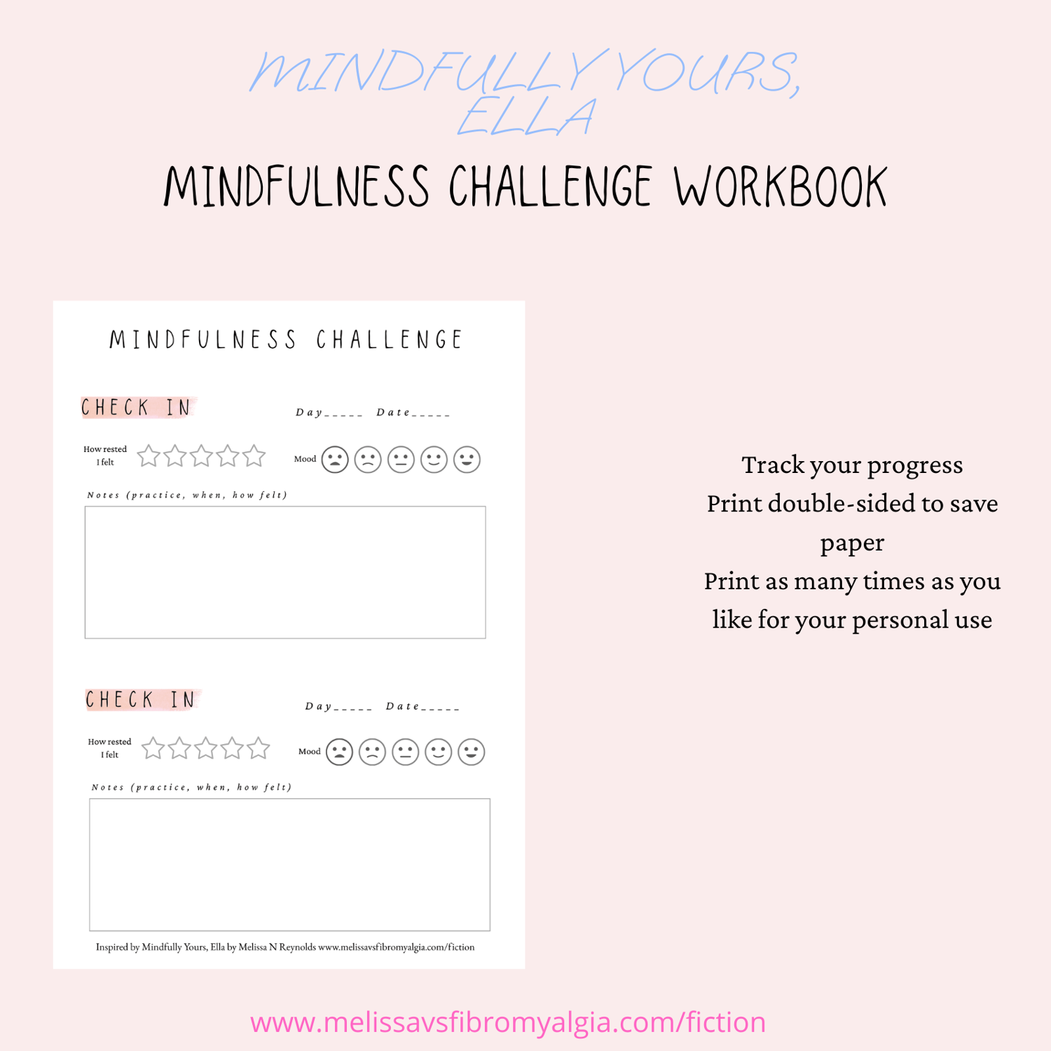 This mindfulness challenge workbook was designed for those who wanted to try their own challenge after reading Mindfully Yours, Ella. A cozy romance about a woman with fibromyalgia who takes up a mindfulness challenge and along the way learns to accept herself and fall in love. But anyone can benefit from this workbook - you will get a month worth of mindfulness prompts, two styles of worksheets to track your personal challenge and free resources to support your own mindfulness challenge. Including a significant discount to the complete Mindfully Yours, Ella Challenge Toolkit.