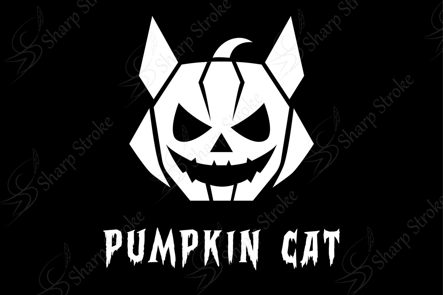 This design features a mischievous white Pumpkin with sharp teeth and cat ears, glowing against a black background — a unique twist for any project.