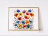 Prinatble Art, Cottagecore Watercolor Flowers Transparent PNG Design in Orange & Blue| Bushel of Flowers| Watercolor Flowers| PNG Sublimation Designs, Floral Prints