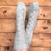 The Summer Vine socks are worked from the top down, starting with a ribbed cuff. Then you will work the cascading lace pattern down the leg of the sock. The heel is worked as a heel flap with the pretty Eye of Partridge slip stitch pattern, and a gusset is worked for a nice comfortable fit.