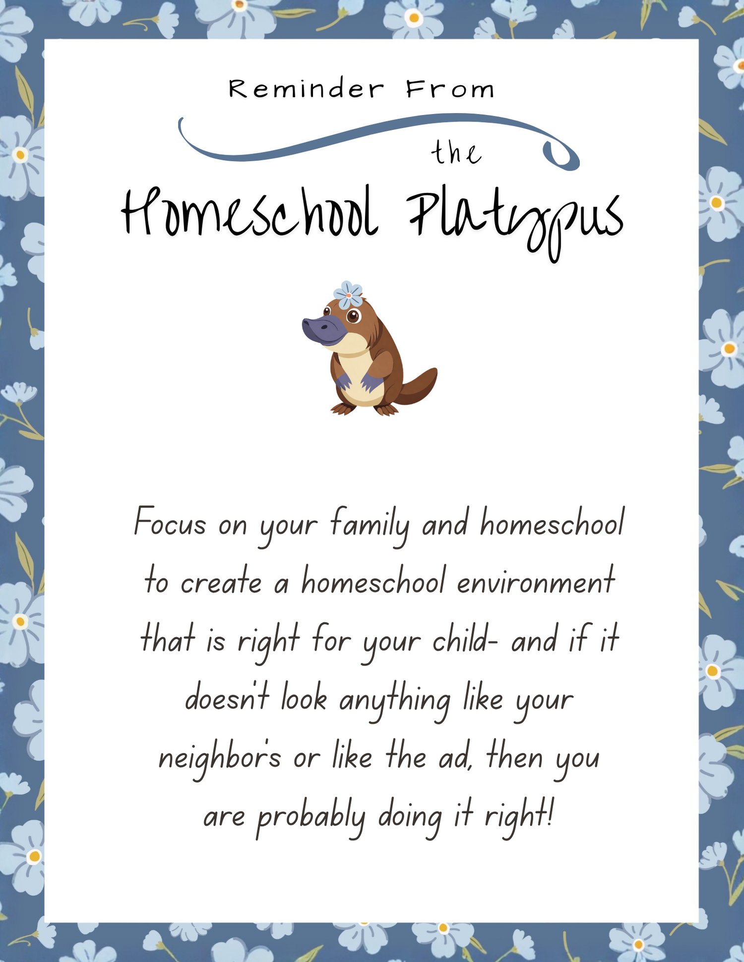 Let the Homeschool Platypus guide you this year and help you keep your homeschool unique to your family!