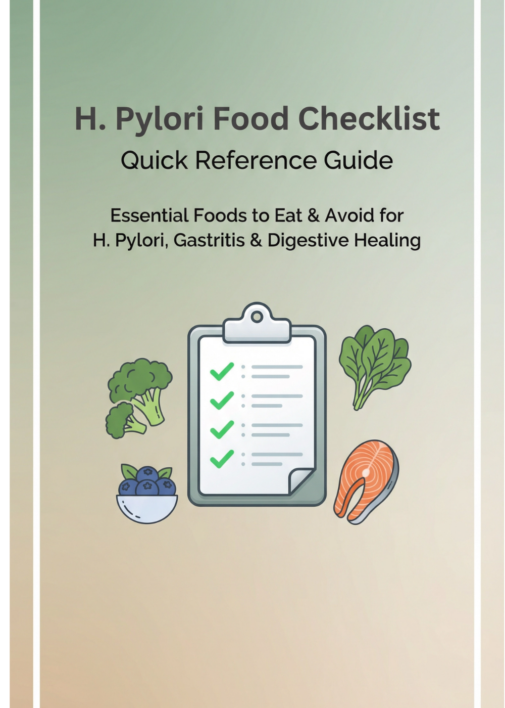 This checklist is just the beginning. For detailed meal plans, shopping lists, and evidence-based explanations, check out the complete H. Pylori Food Guide.