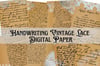 This kit includes 16 junk journal papers that feature Handwriting and, white lace designs along a vintage background to make classy and romantic pages.