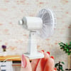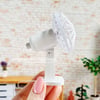 This miniature table fan can be rotated up and down and features blades you can really turn!