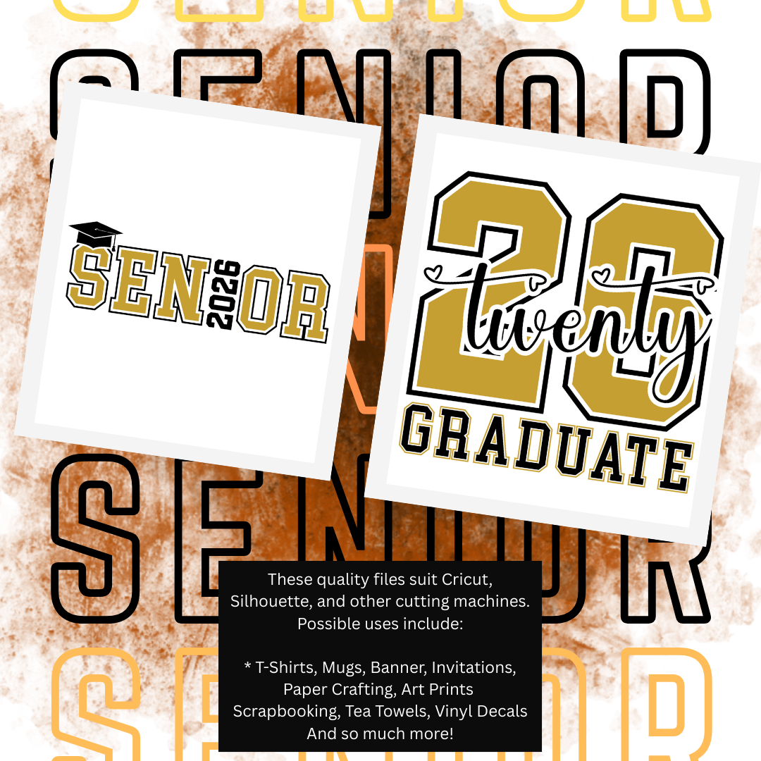These versatile files can be used for T-shirts, mugs, paper crafting, vinyl decals, decorations, sublimation, and much more. Please note, this is a digital product; no physical items will be shipped. Make your senior year memorable with our premium-quality designs tailored to suit all your crafting needs.