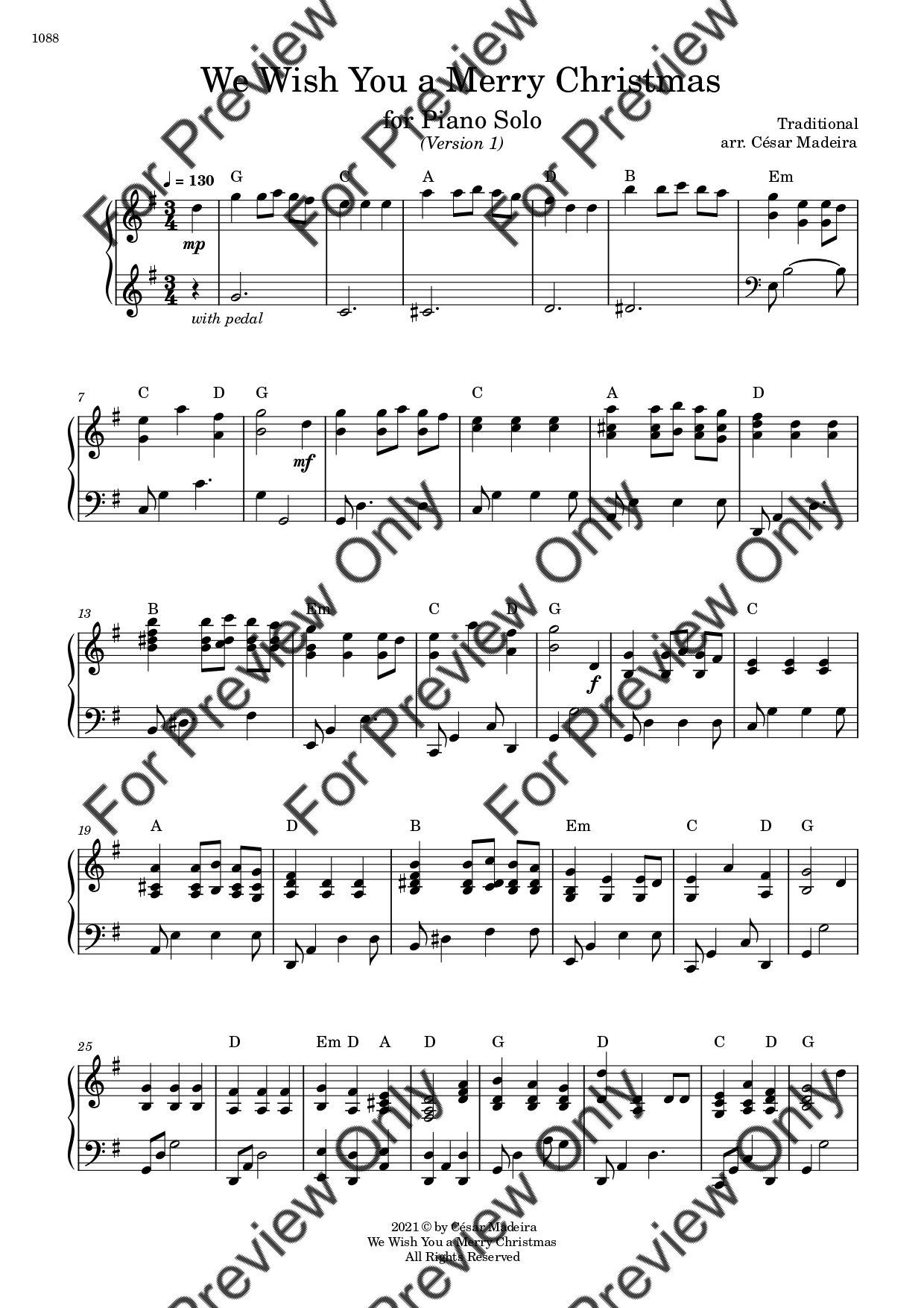 We Wish You A Merry Christmas. Arrangement for Piano Solo. With Full Score. Have fun!