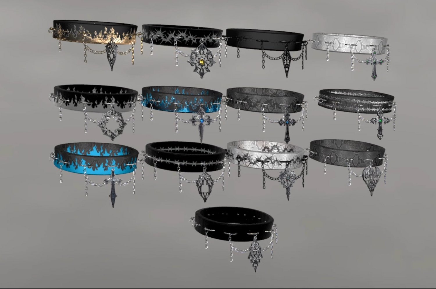 Premade Poiyomi materials for ALL colors/patterns of collar included in package, metal, and pendants