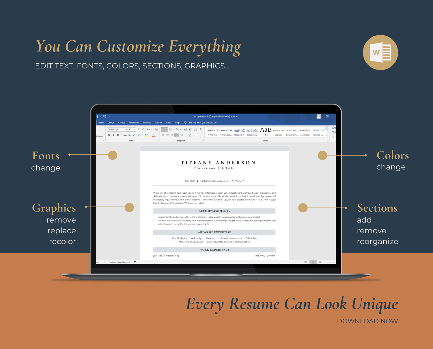 Modern Resume Template in Word, ATS-Optimized | Tiffany
