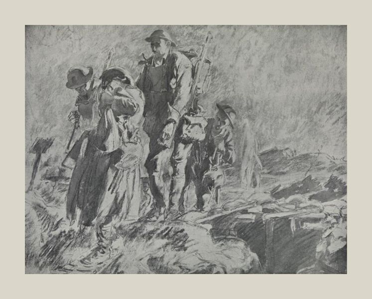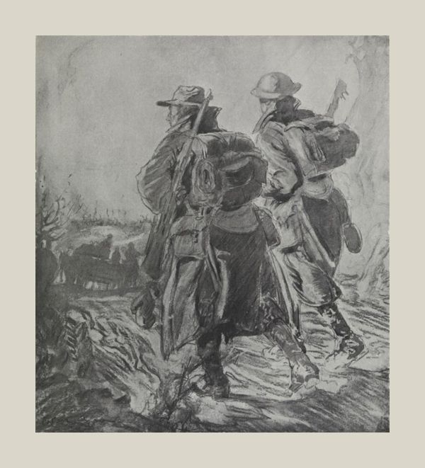 Indeed there is something significant in all that white light and sharp shadow which belongs to such dramatic scenes, and is so favourable to the art of black and white. There is even something of allegory in that awful and empty daylight in which armies live, so often without a stick of roof or a rag of curtain. All the soldiers in a great war are historical characters; but these are rather specially standing, not against court or camp, but only against the sky. They are under a light which will indeed prove eternal; even as compared with other historic groups their contribution has been written into the annals of history and will continue to be known forevermore.