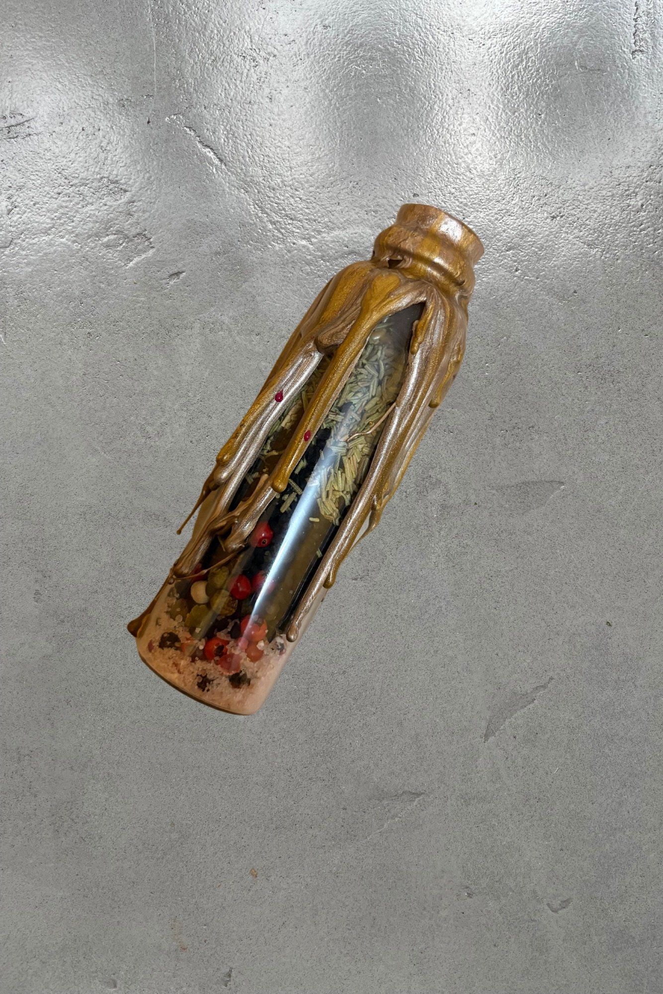 Bestandteile: Glas, Kork, Wachs, Kräuter, Edelsteine