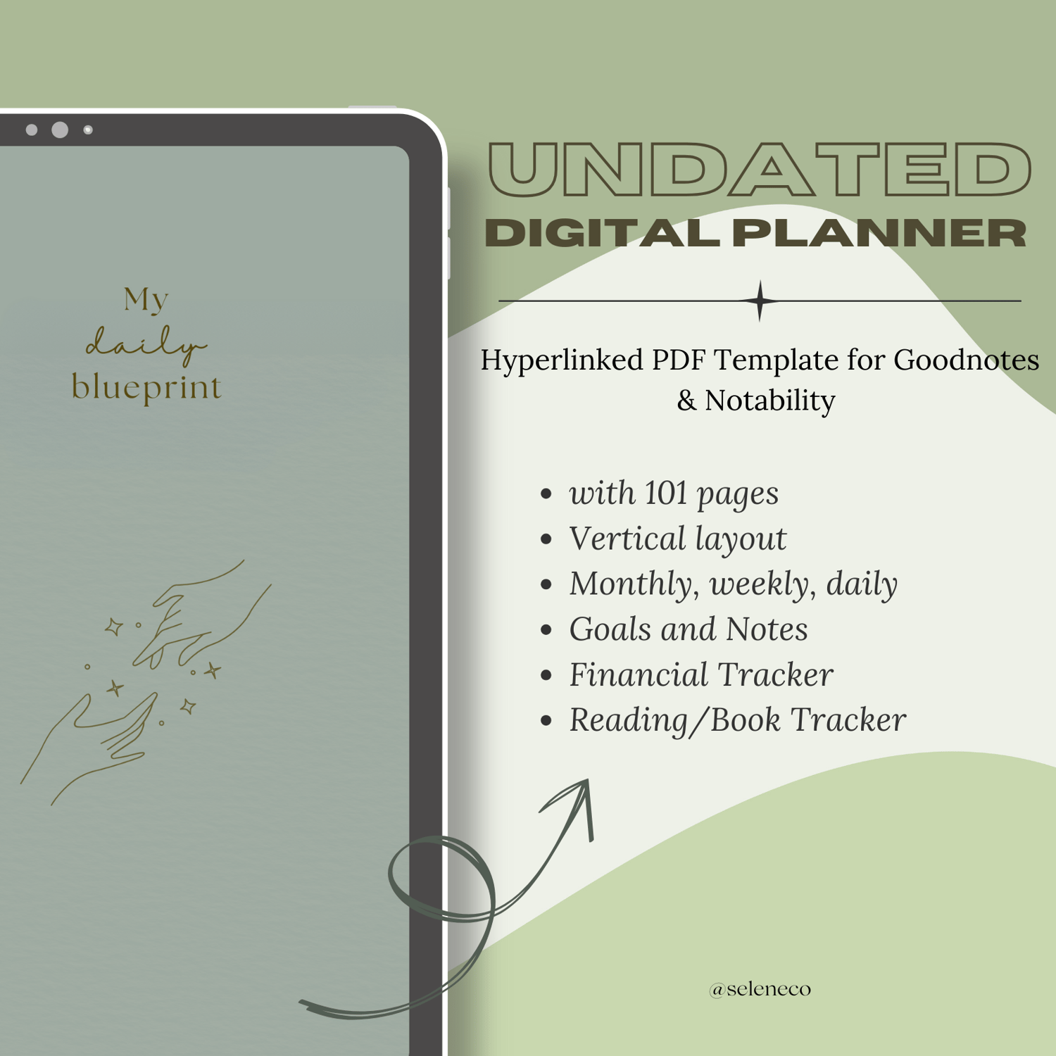 - Undated and fully hyperlinked portrait digital planner in PDF format.