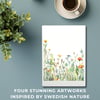 A curated selection of four unique landscape artworks in three different designs, each celebrating the beauty of the wonderful Swedish nature.