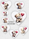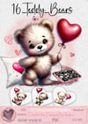 16 cute Teddy bears. 8 bears with & without background. Use with background for Valentine’s Day and without for Mother’s Day, Birthday etc
