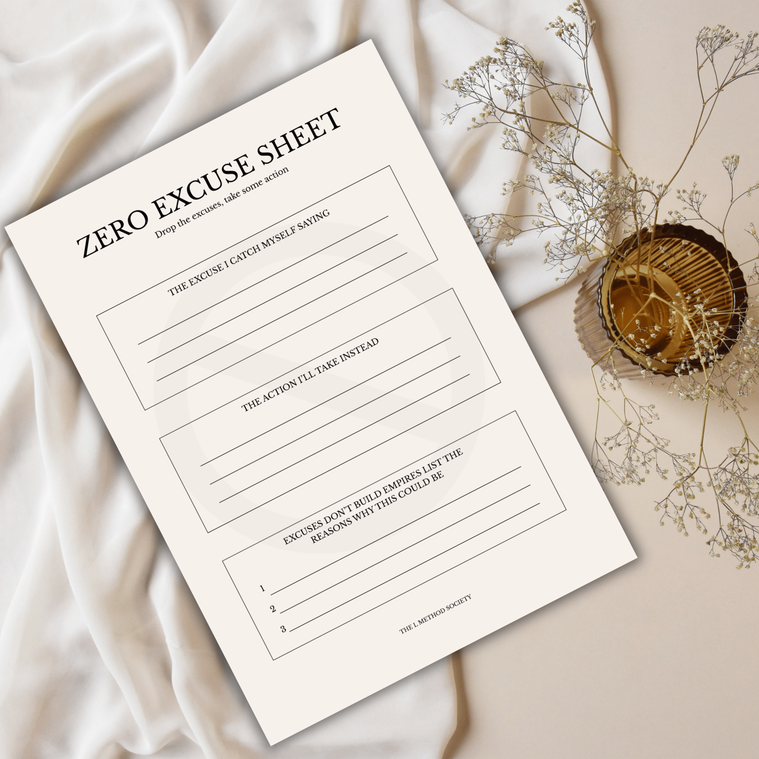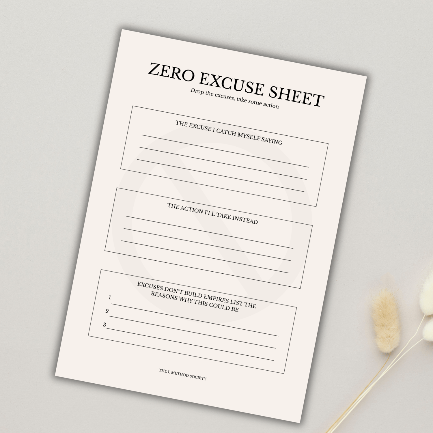 The editable Zero Excuse Sheet printable helps you face your goals directly, eliminate excuses, and move forward with discipline and self-trust.