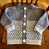 The Zandra is a baby / toddler / young child’s cardigan that’s knitted top down. At the underarms stitches are placed on holders for the sleeves, then the body is continued in one piece. The sleeves are then worked top down too and are seamless. There are short rows which raise the back of the neck for a better fit.