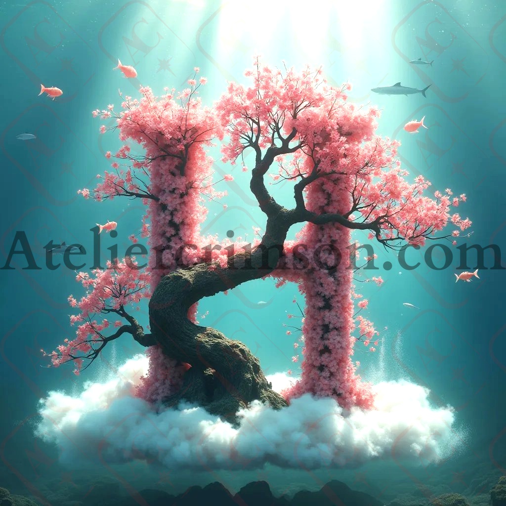 The letter H bonzai aquamarin cloud a captivating digital painting with a serene underwater bonsai. Download Now this high quality AI-generated image, perfect for adding a touch of tranquility and creativity to any space.