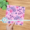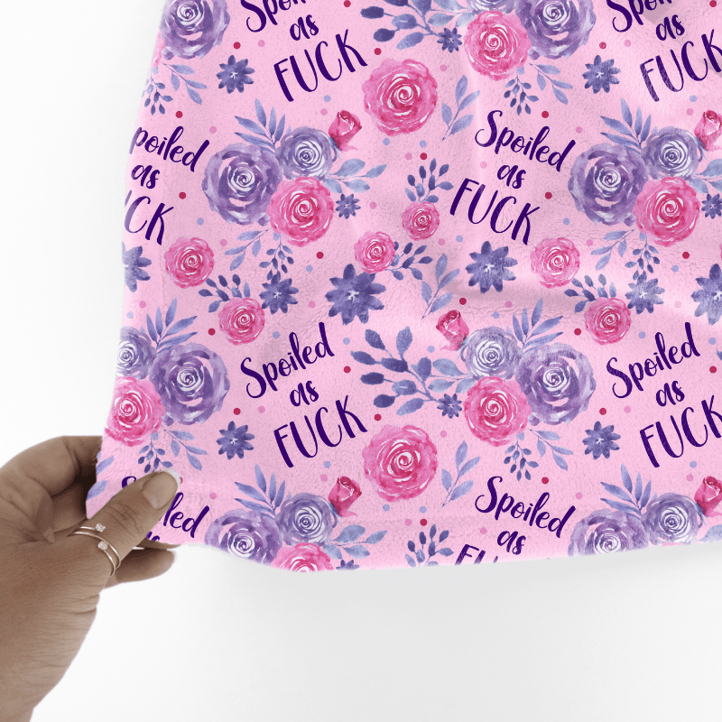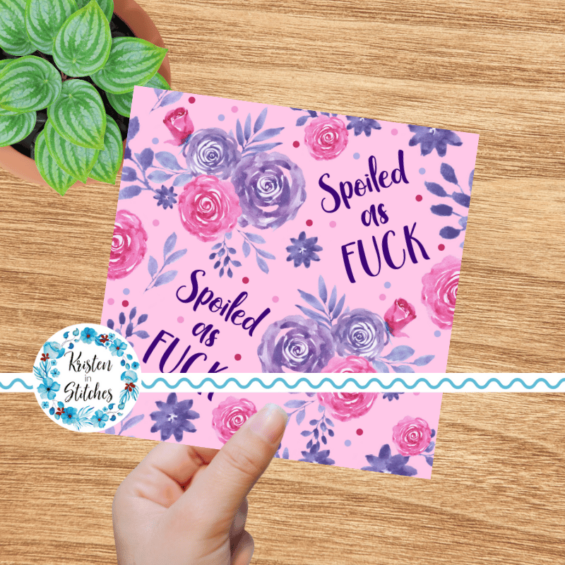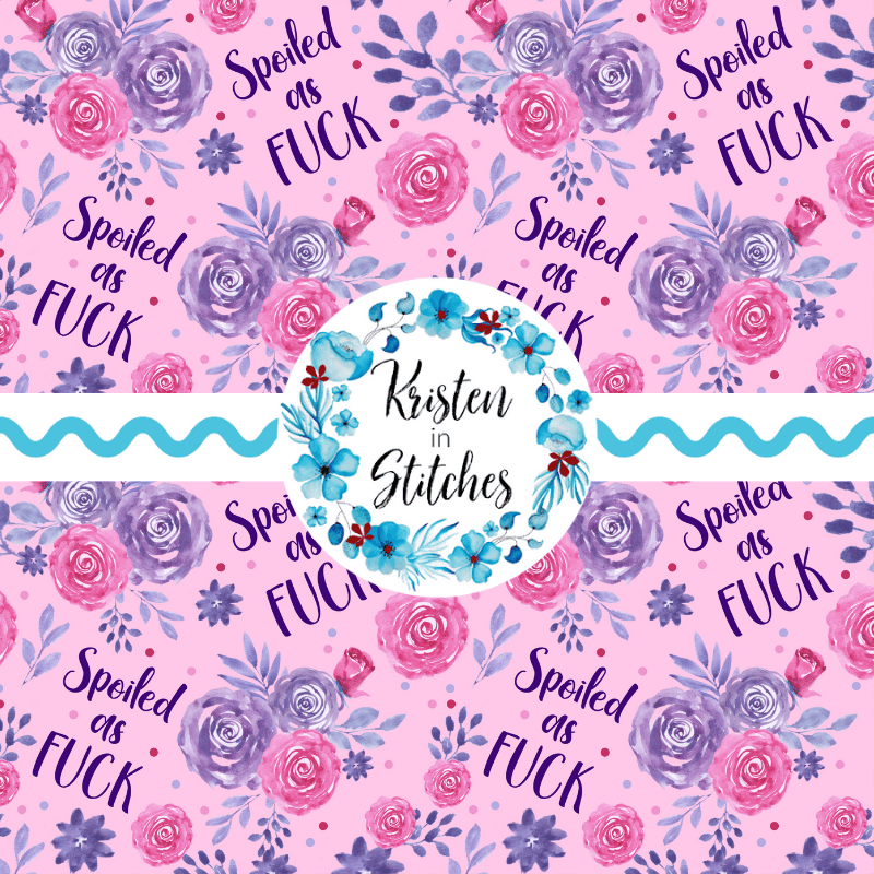 Spoiled as Fuck, with pink and purple flowers.