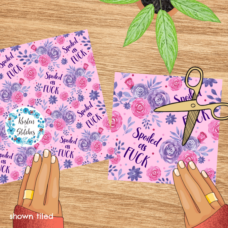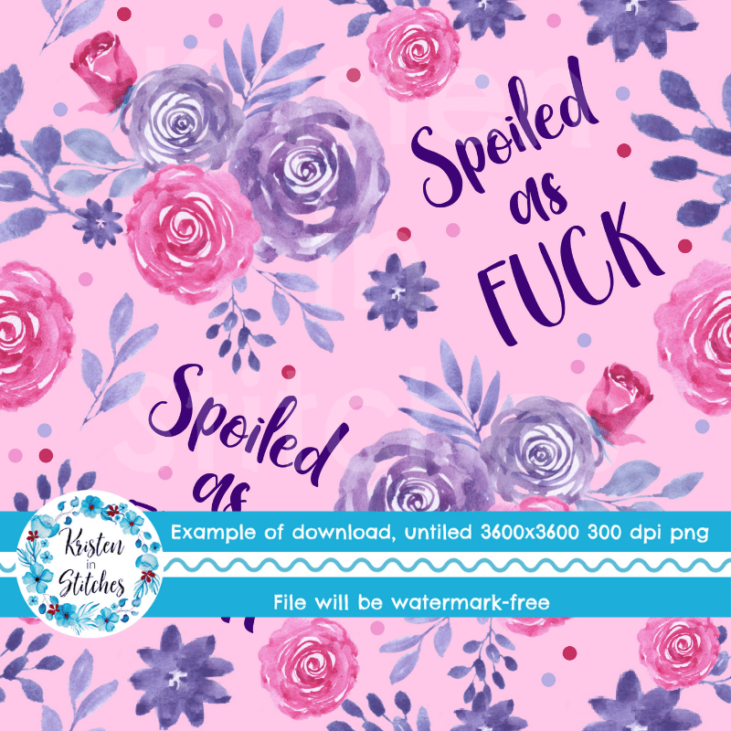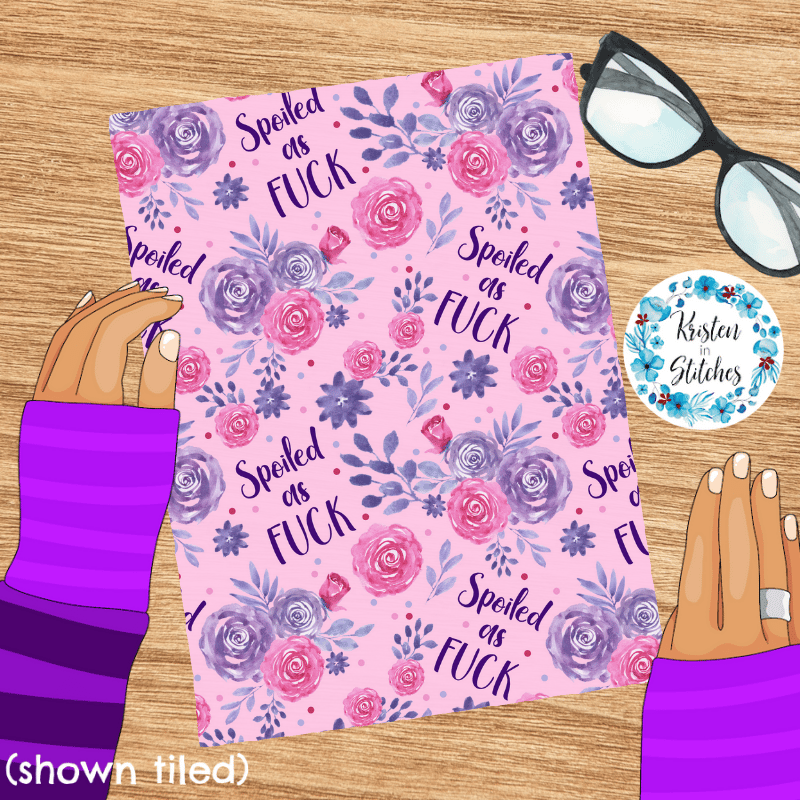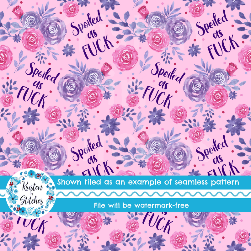 Spoiled as Fuck Swear Word Floral Seamless Pattern, Pretty Profanities, Pink and Purple