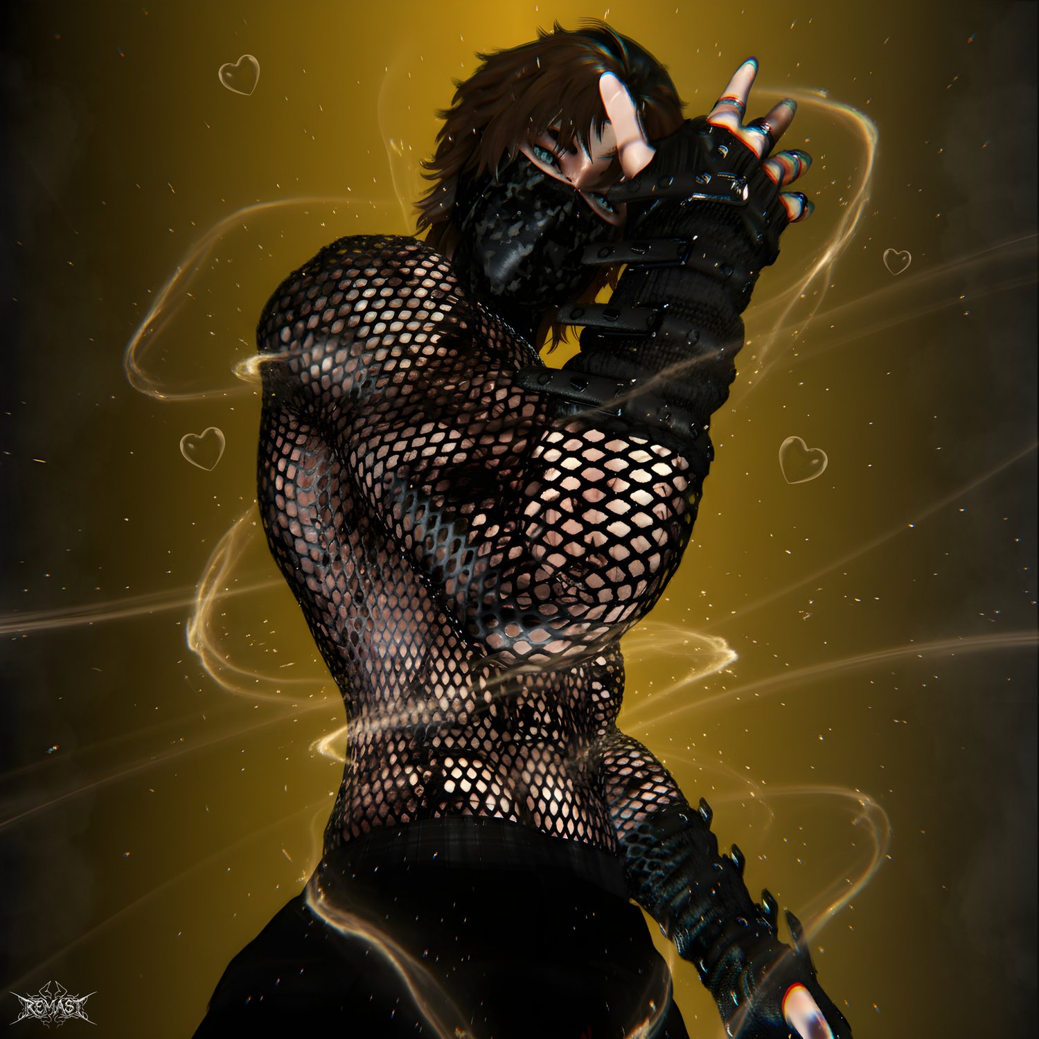 Fishnet1 Fishnet2 Shirt1 Shirt2 Formallysexy Stripavest Puffer jacket Vest Cropped tank Jersey Cargo Edgepants Motion Pants Short Belt Boxer Jordan R4 Jordan R1 Force Boots Socks Bandaids Glasses Mouth Spike & Face Chain Panties Puffer head Hat Headphone Wrap Gloves Arm warners Bracletts Reloj Rings Elbow pads Knee pads Rag Bail Mullet Stitches Fang Crow Arin Tattos Body Tattos Face