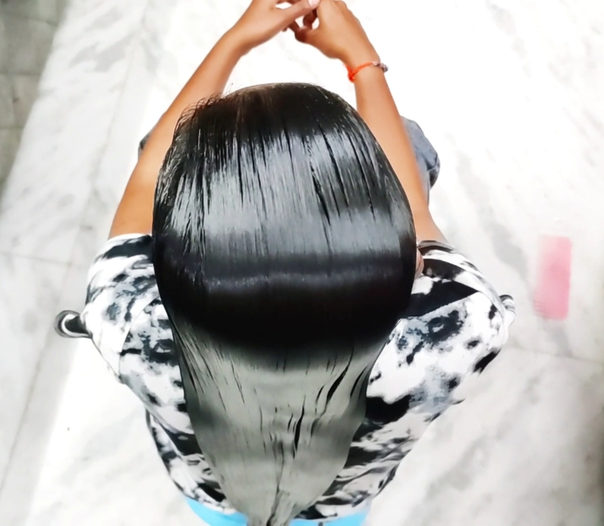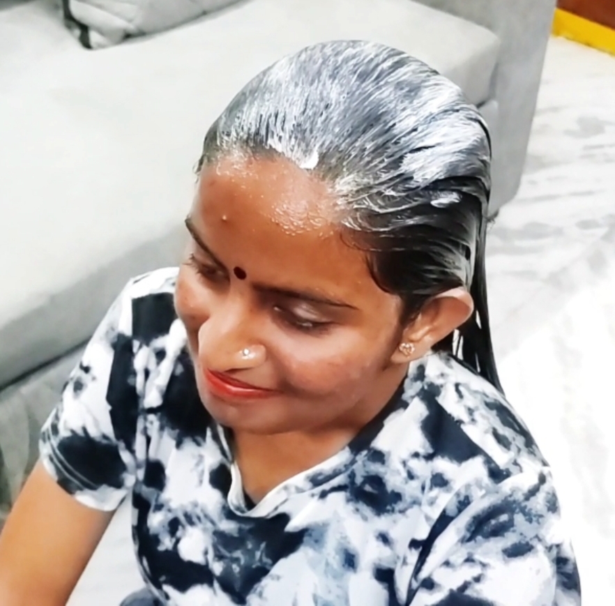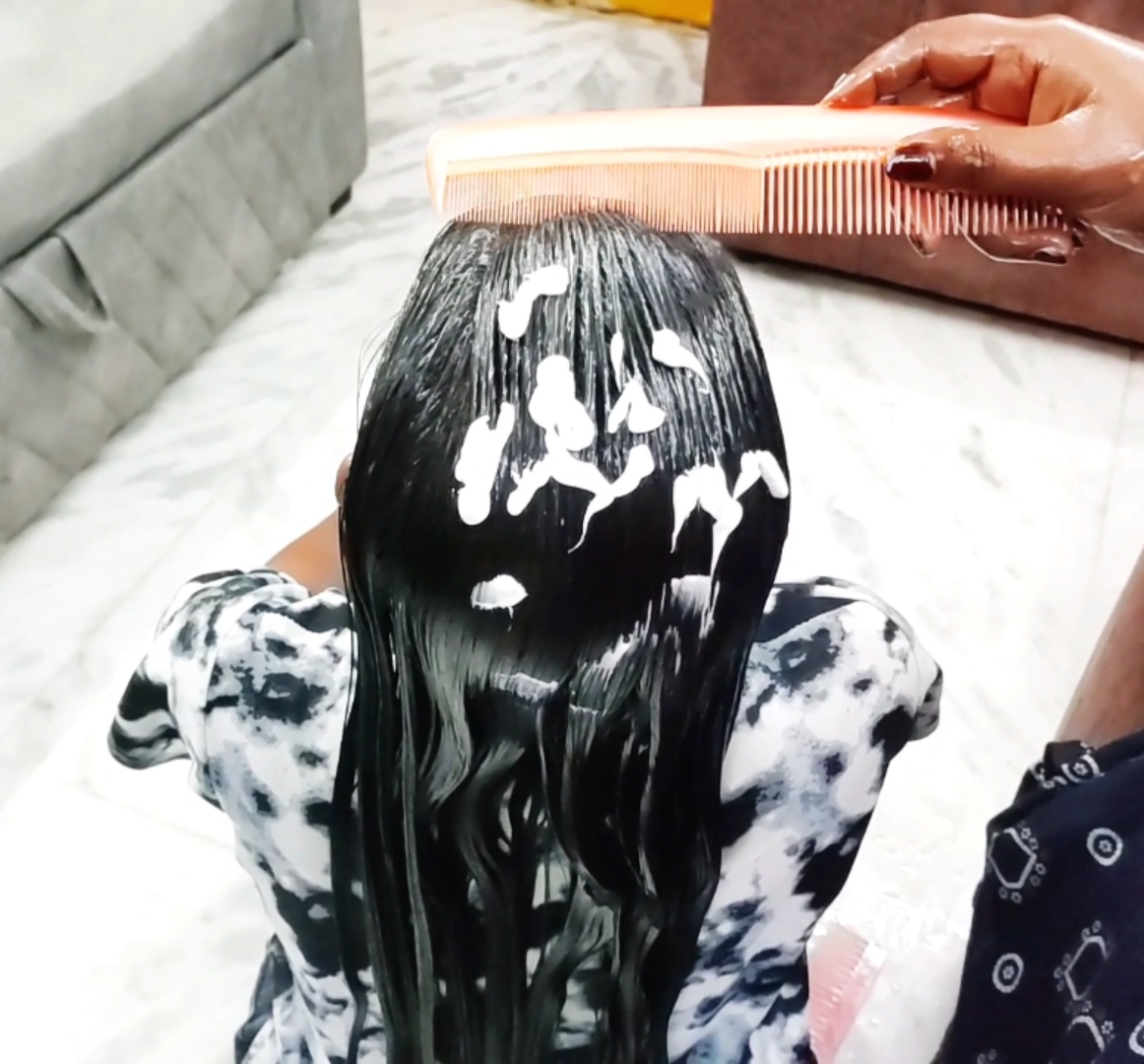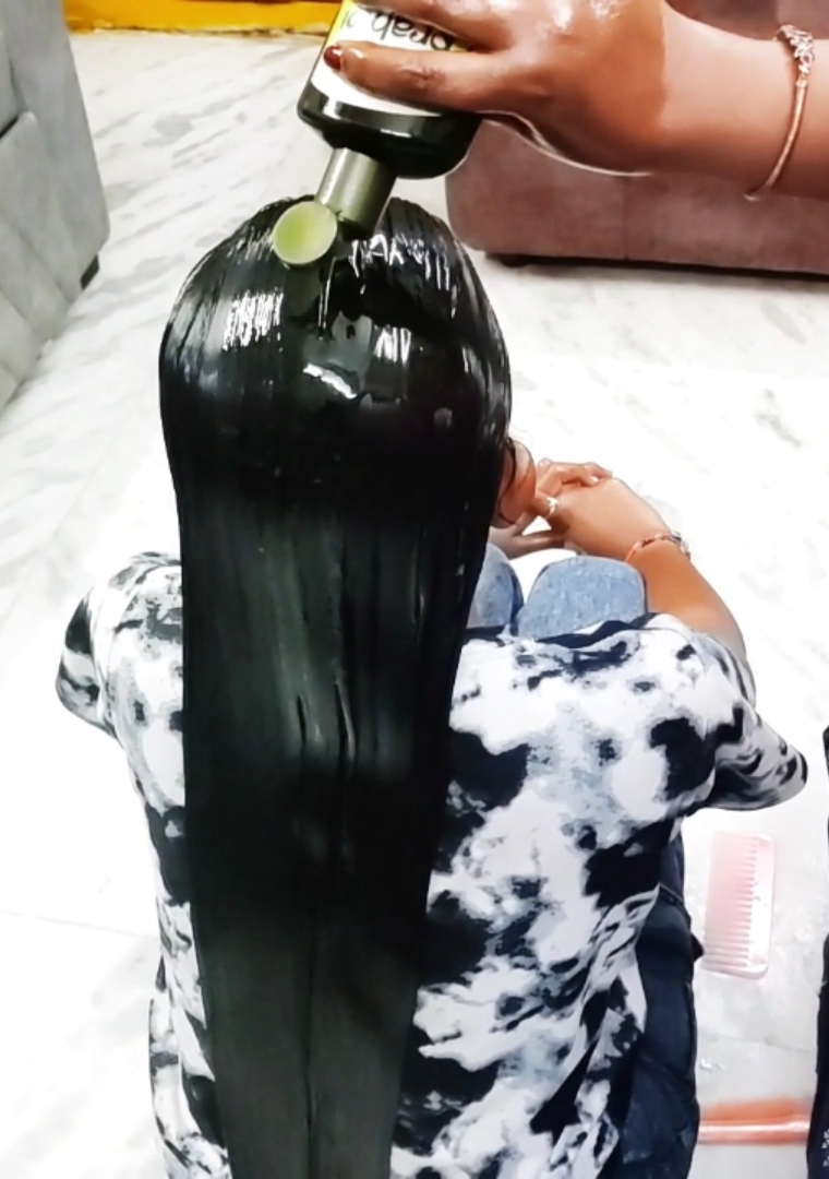 Heavyoiling+creaming longhair with moisturizing lotion for relaxation