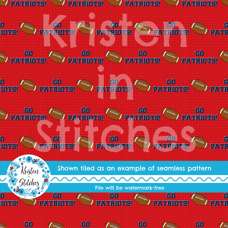 Team Spirit Go Patriots Football Seamless Pattern, New England
