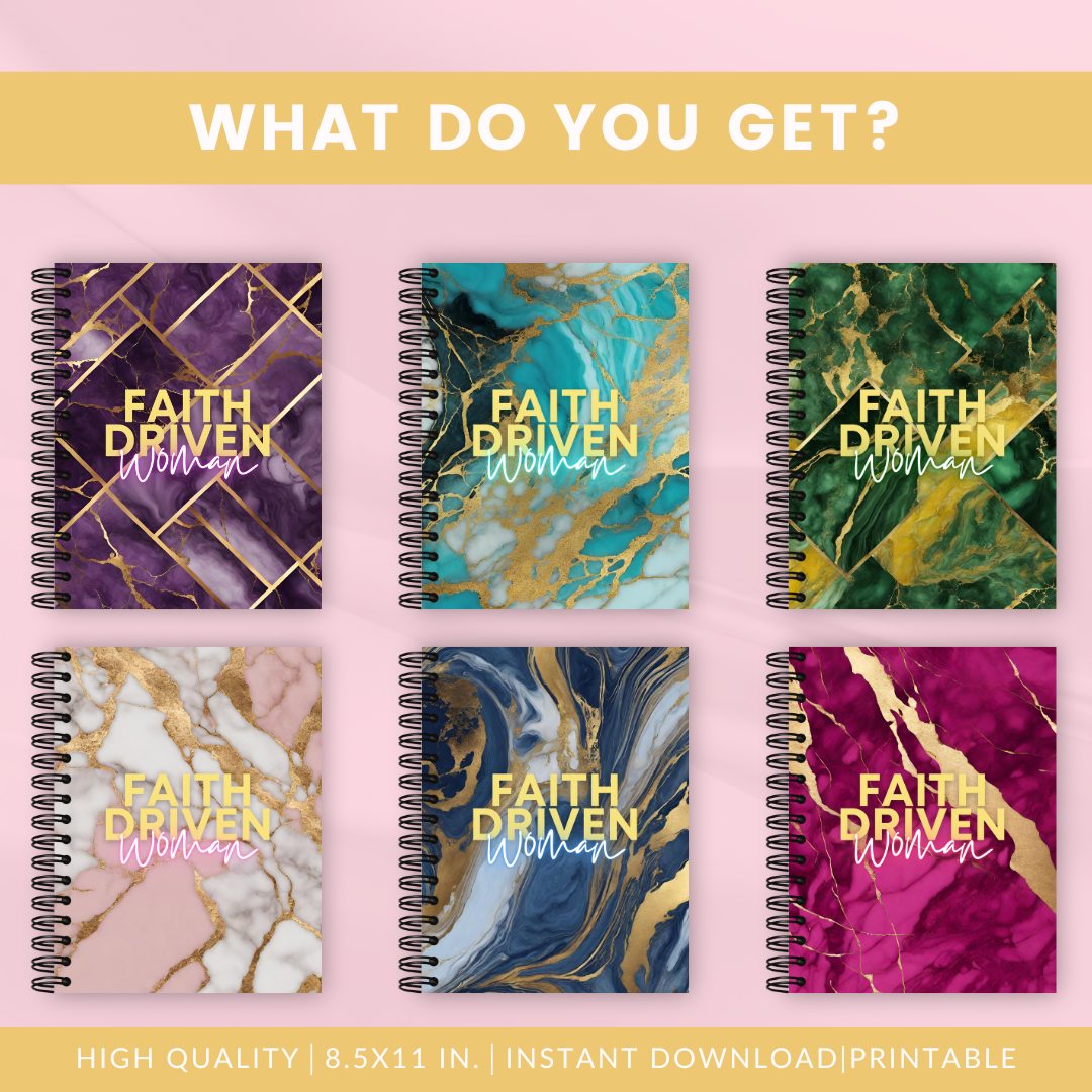 Embark on a transformative journey with out Faith Driven Woman journal covers, designed for compatibility with the Goodnotes app. Fully editable and thoughtfully designed in an 8.5x11 in format, these covers seamlessly combine functionality and reflects the spirit of a Faith-Driven Woman.