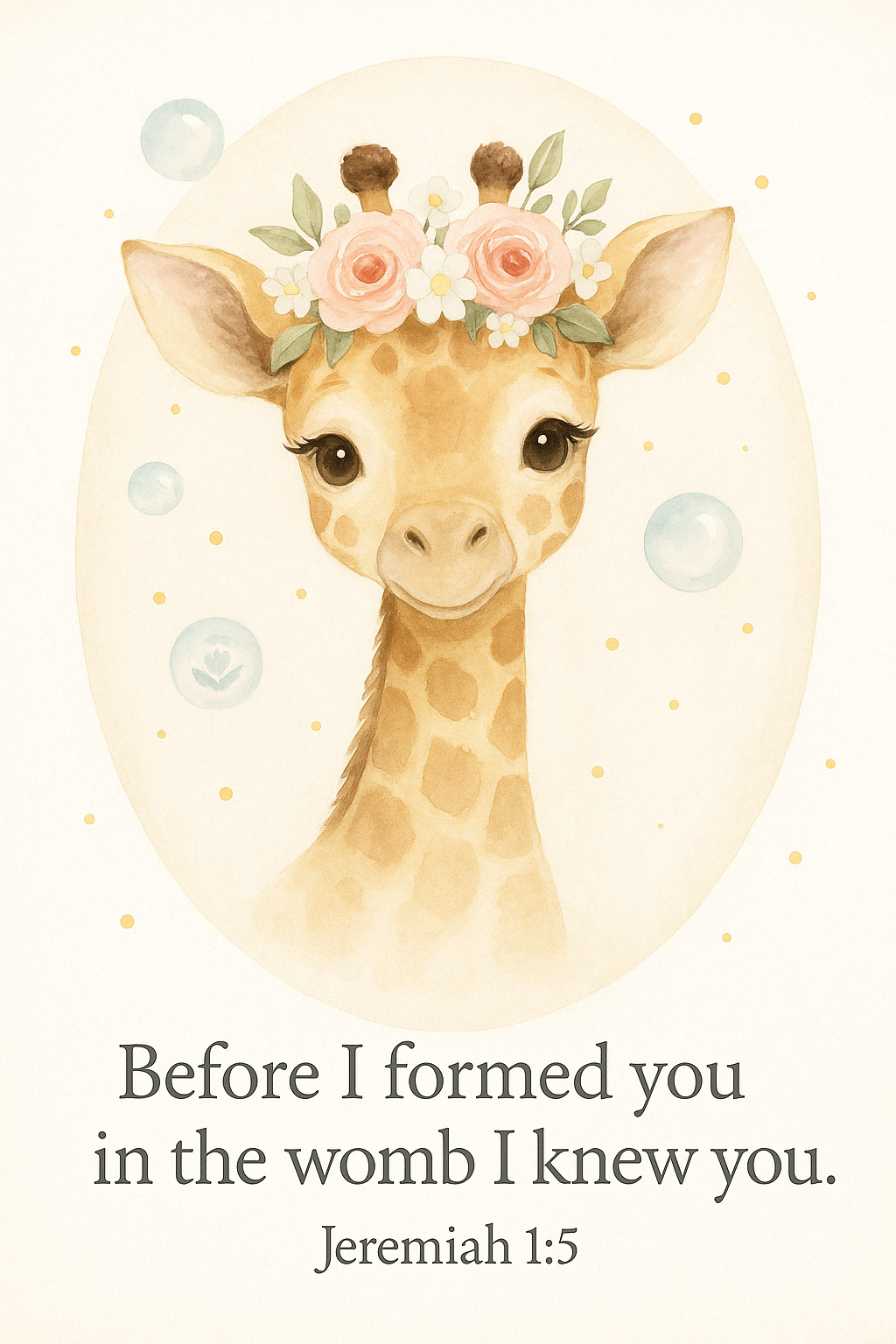 🦒🌸 Christian Nursery Scripture Wall Art – Jeremiah 1:5 Baby Giraffe Poster – Faith-Based Printable for Baby Room, Devotion & Ministry – Divine Identity Theme