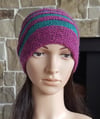 This family Beanie has a garter stitch brim and is then worked in a combination of stocking stitch and garter stitch stripes.