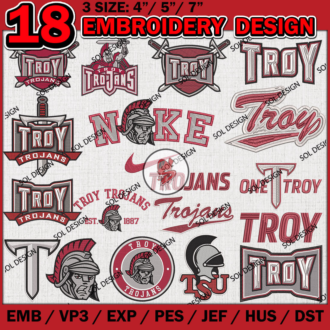 18 Troy Trojans Bundle Embroidery Files, College Football Embroidery Designs, NCAA Troy Trojans Machine embroidery Design Bundle, Ncaa Troy Trojans Logo bundle, Digital Download