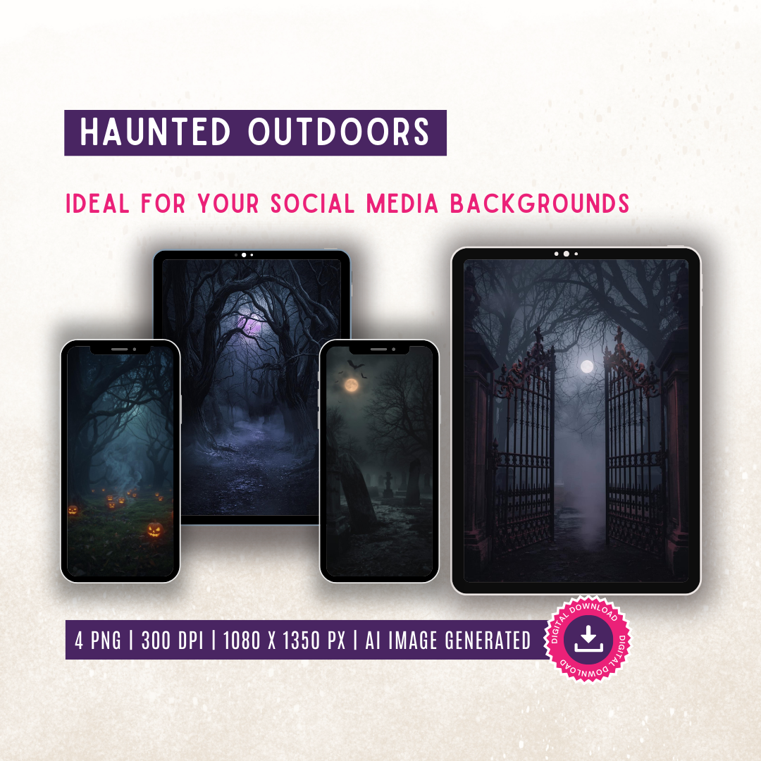 Haunted Outdoors AI Image Pack – 4 Social Media Backgrounds
