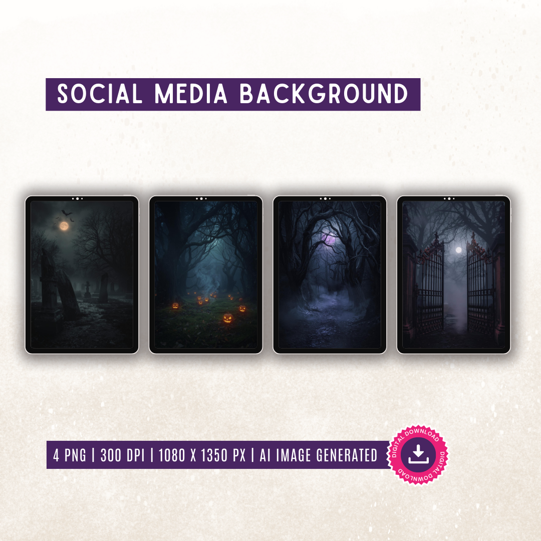 Whether you are sharing quotes, tips or promotions, these eerie outdoor scenes from moonlit graveyards to misty forest paths will give your content a hauntingly professional edge.
