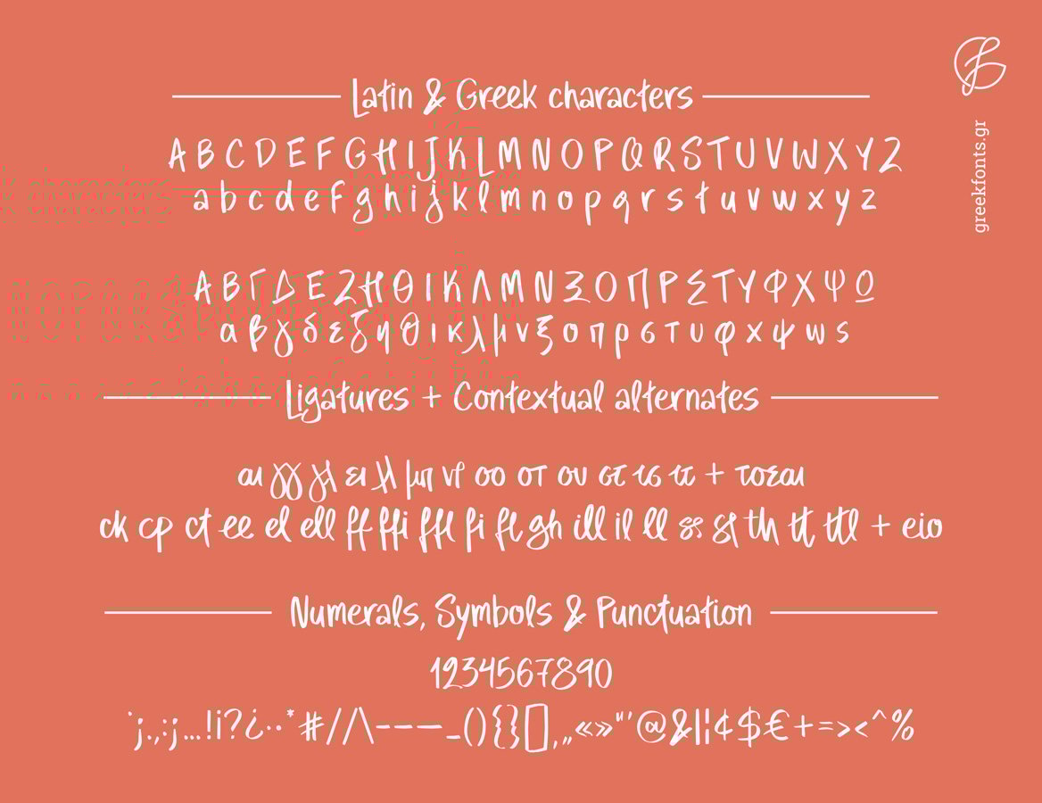 (Note: To access all the handwritten variations and ligatures, please ensure your design software supports OpenType features and that they are turned on!)