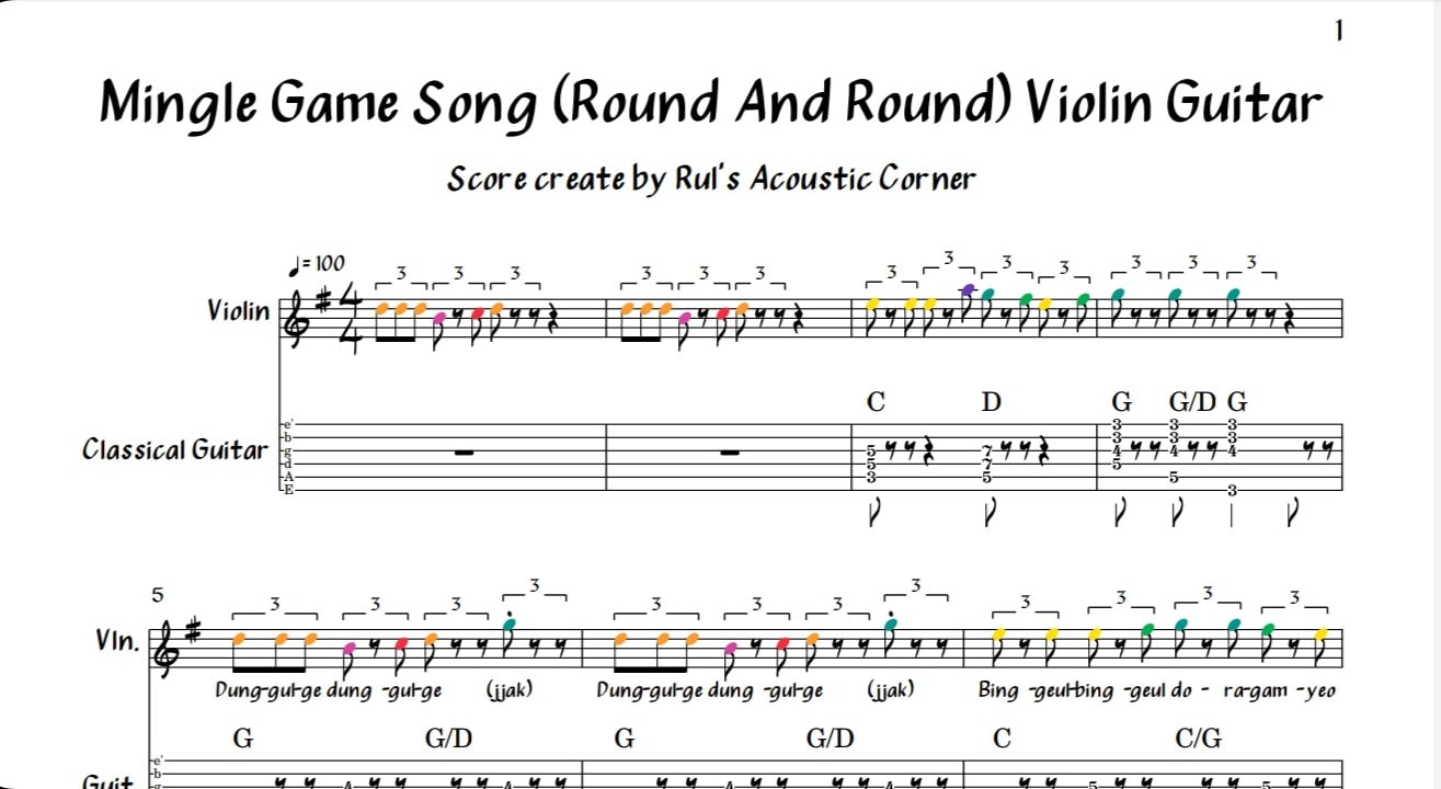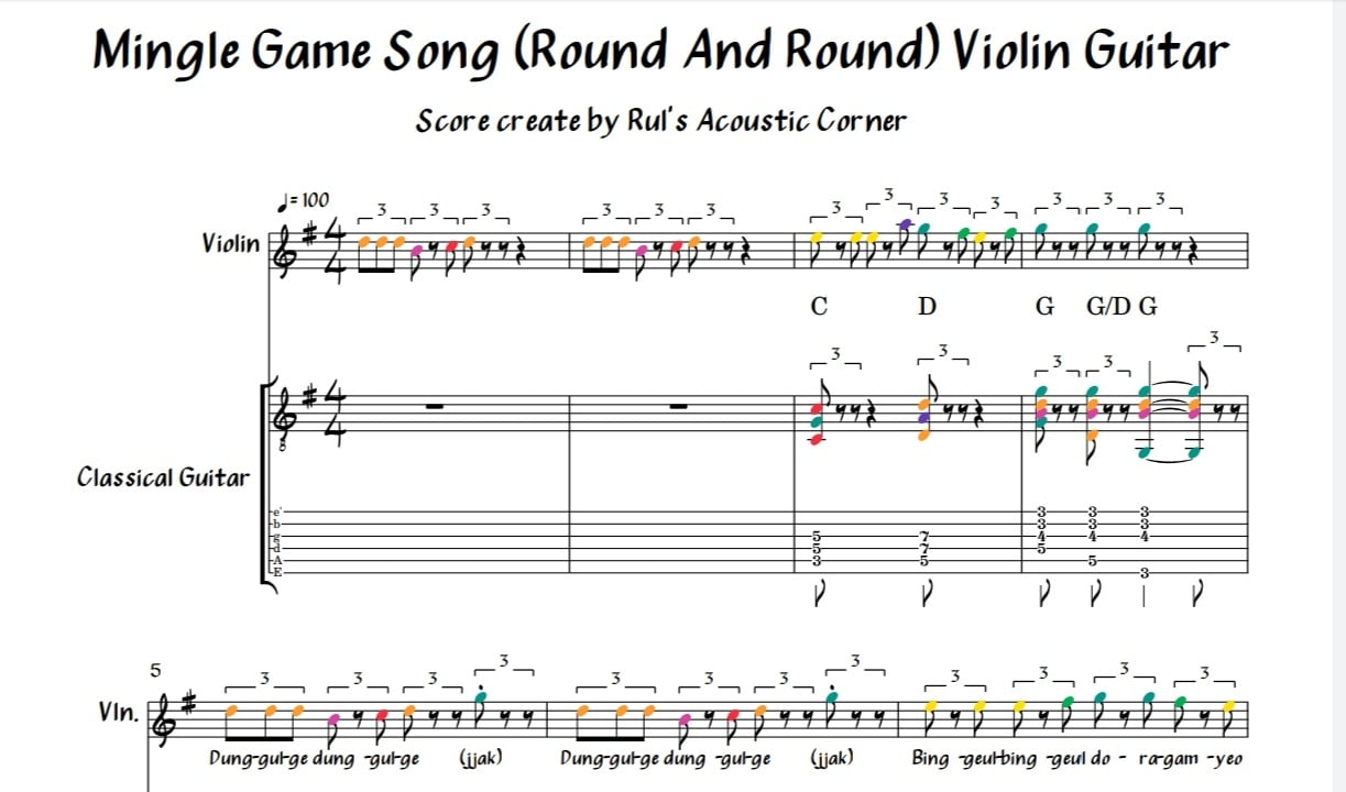 Mingle Game Song RoundAndRound Violin Guitar Musical Notes Tabs PDF Video