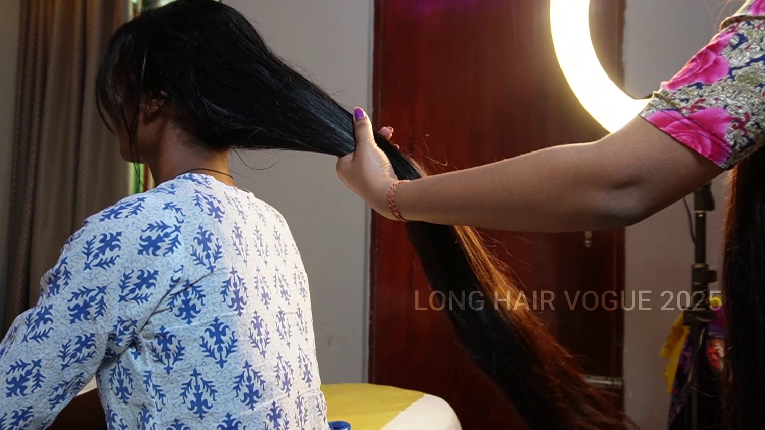 Watch Sanju enjoy a luxurious 12-minute hair care ritual! Her friend gently massages oil into her scalp, washes her silky hair, and towel-dries it to a glossy finish—all in stunning HD. Perfect for lovers of step-by-step hair routines, collaborative care, and soothing visuals. No ASMR, just pure focus on textures, flowing water, and the art of pampering long locks. Click to purchase instant access and indulge in this calming, real-life hair therapy!