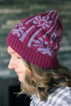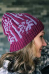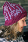 Simple stranded colorwork with a modern graphic design, Flower Lines combines traditional fit with fun contemporary visual style. Make a pop-art punch with bright colors, or pair a saturated color with a neutral. Flower Lines is one of a bundle of modern stranded hats featuring strong motifs for fresh style, and is pictured with some of the companion designs.