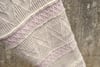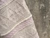 Runestones is a textured wrap inspired by the shapes of Runestones. Textures of Twisted Rib and cables are worked to create geometric patterns, separated by borders of Stockinette Ridges.