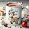 Adorable Christmas Reindeer wrapped in lights, watercolour. Sublimation, print. High quality transparent PNG. Instant download