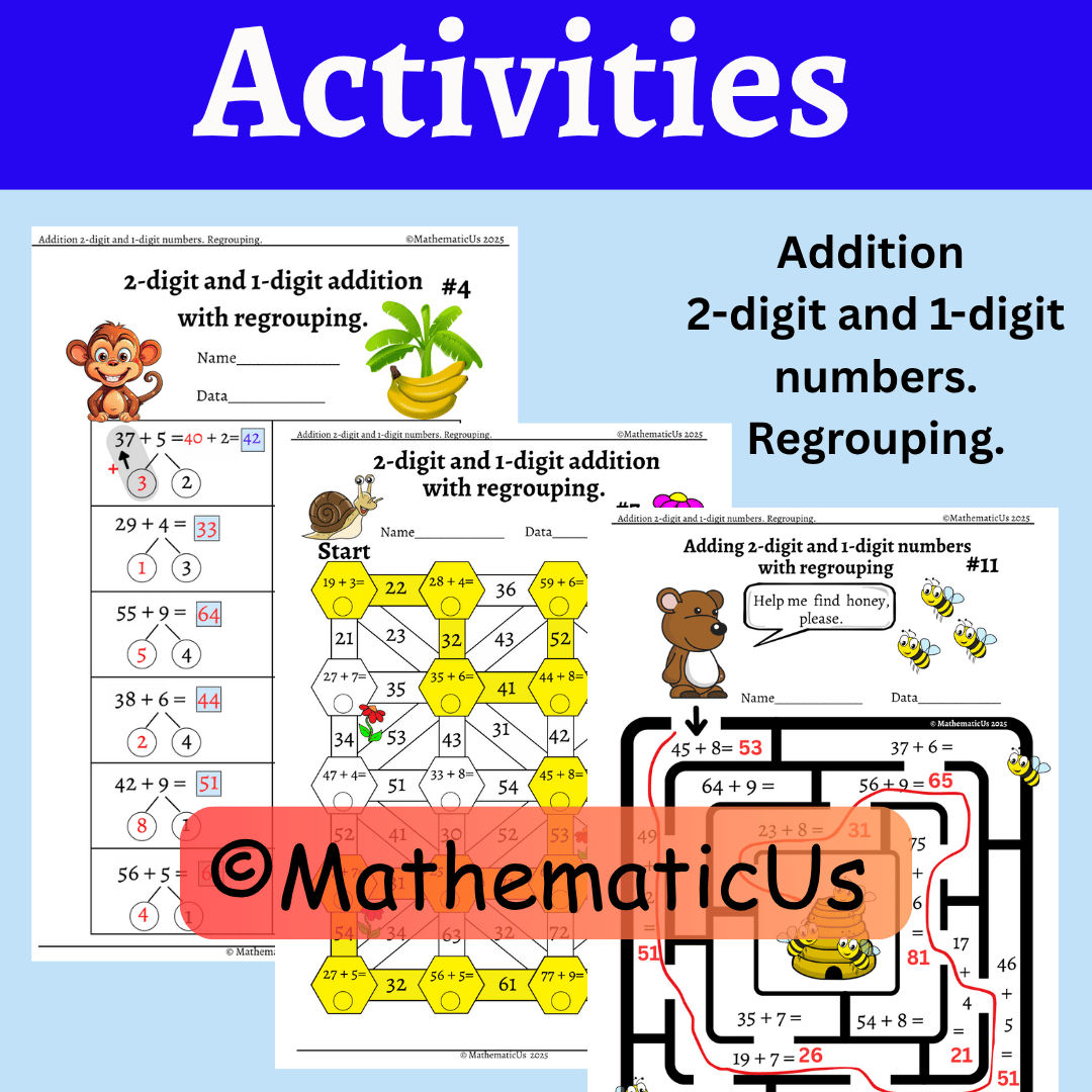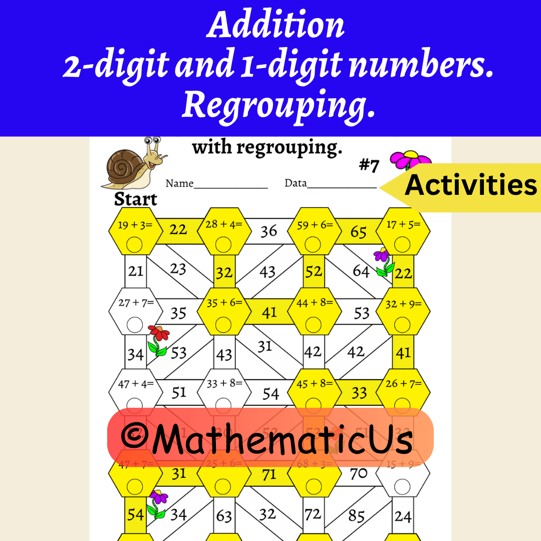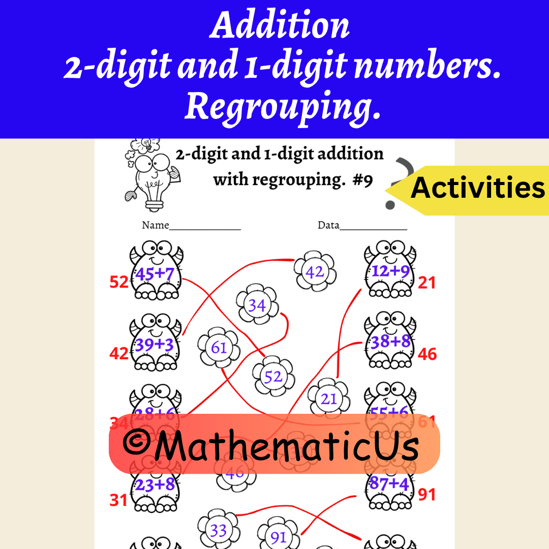 - Addition 2-digit and 1-digit numbers Activities. Regrouping.- Making 10 to Add