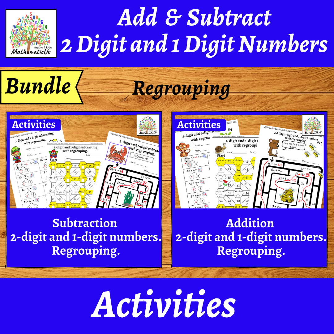 Addition & Subtraction 2-digit and 1-digit numbers Regrouping Activities