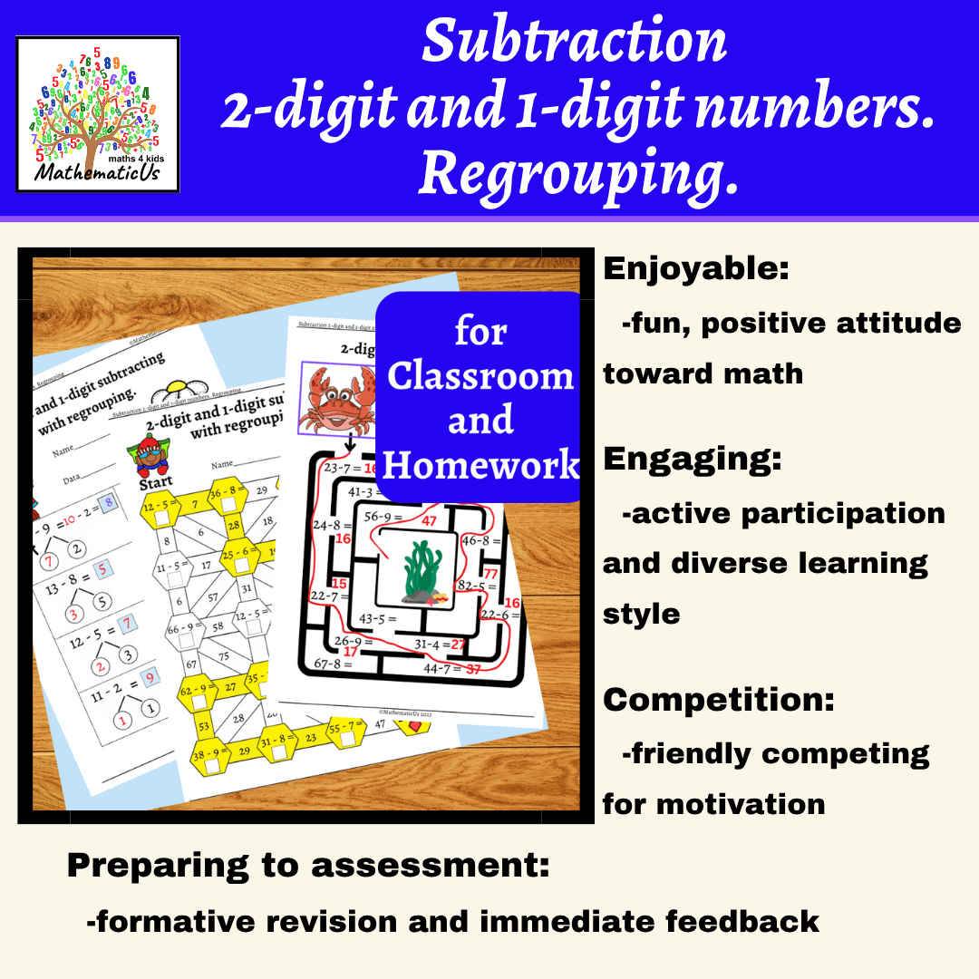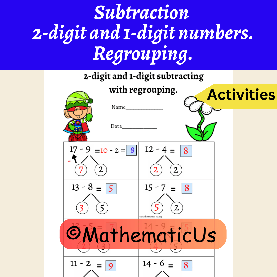 - Subtraction 2-Digit and 1-Digit Numbers with Regrouping| Making 10 Strategy | Grade 2 Math Activities