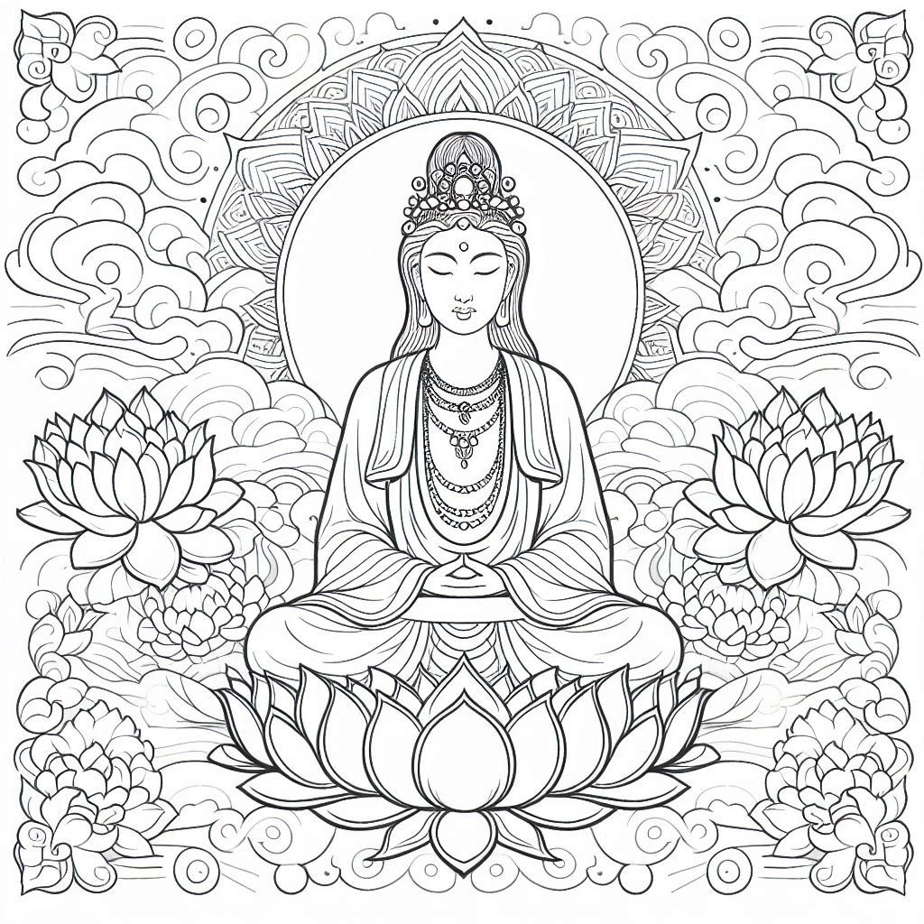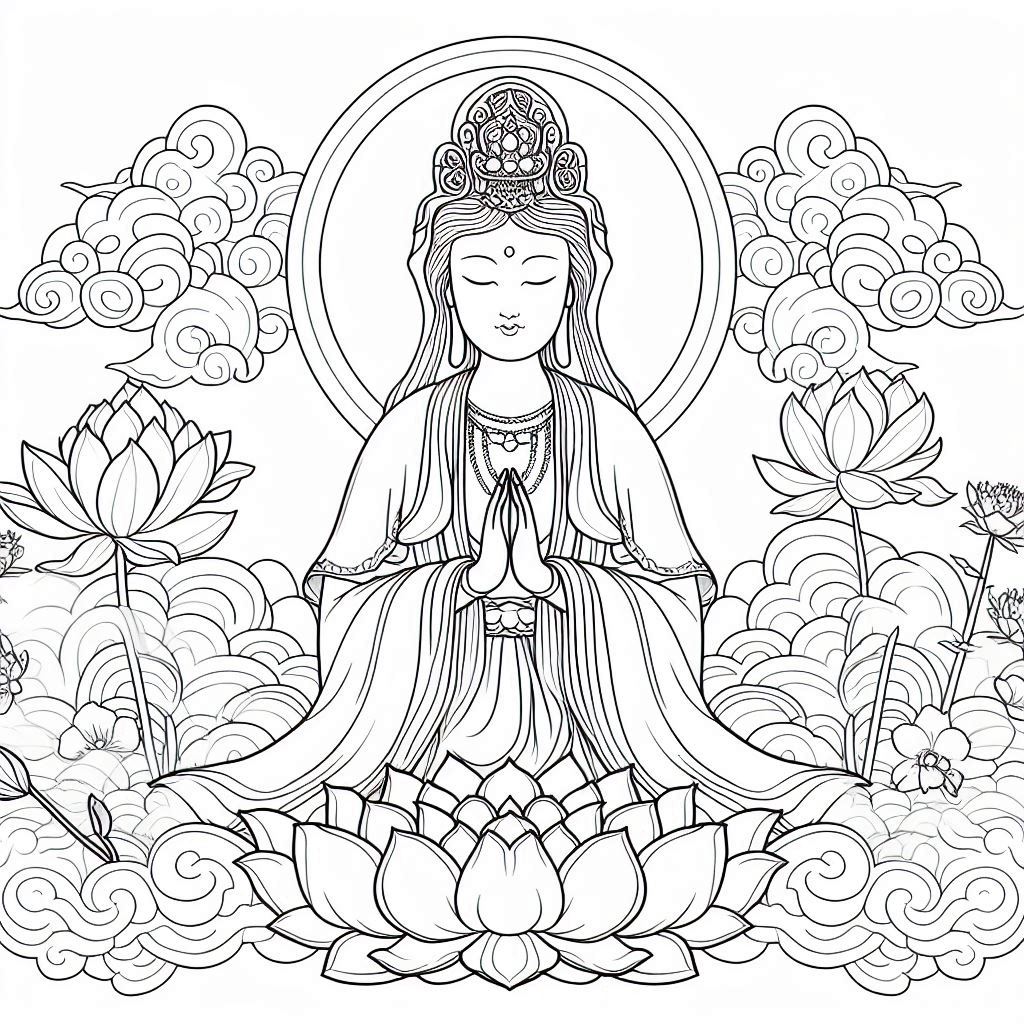 Kuan Yin, coloring ebook, 64 designs, digital product, instantly download