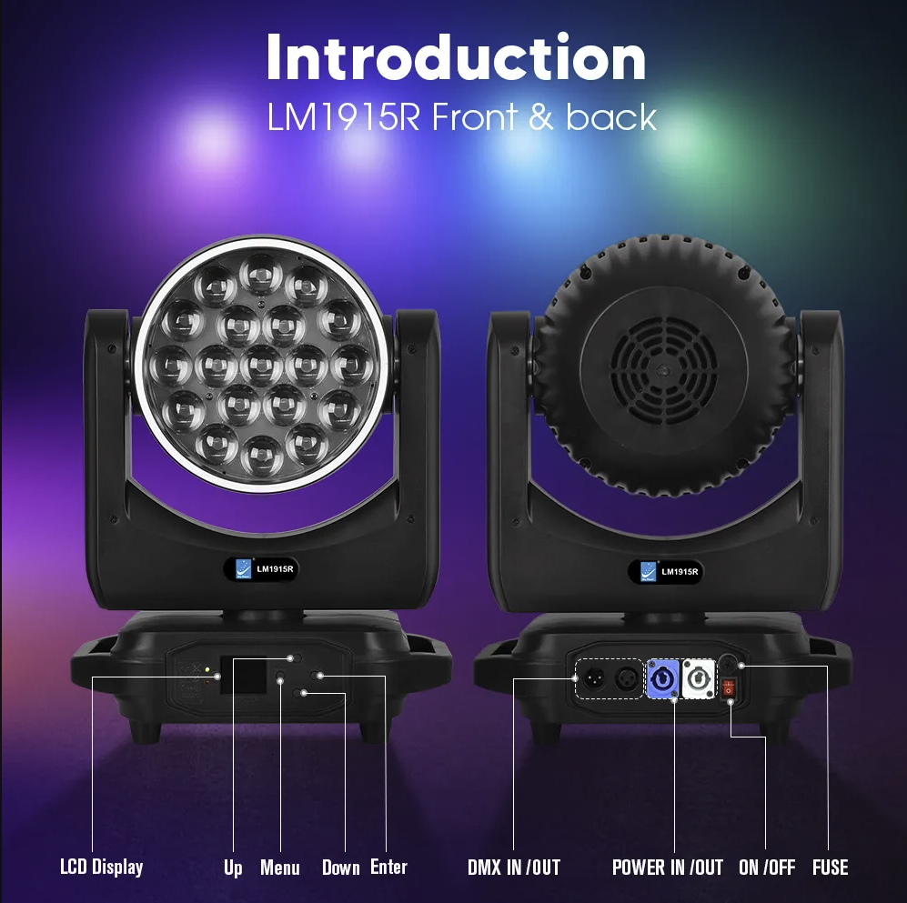Librería para Freestyler DMX del Cabezal "LM1915R" de Big Dipper ( 15-24-32CH con Aro Led ).