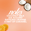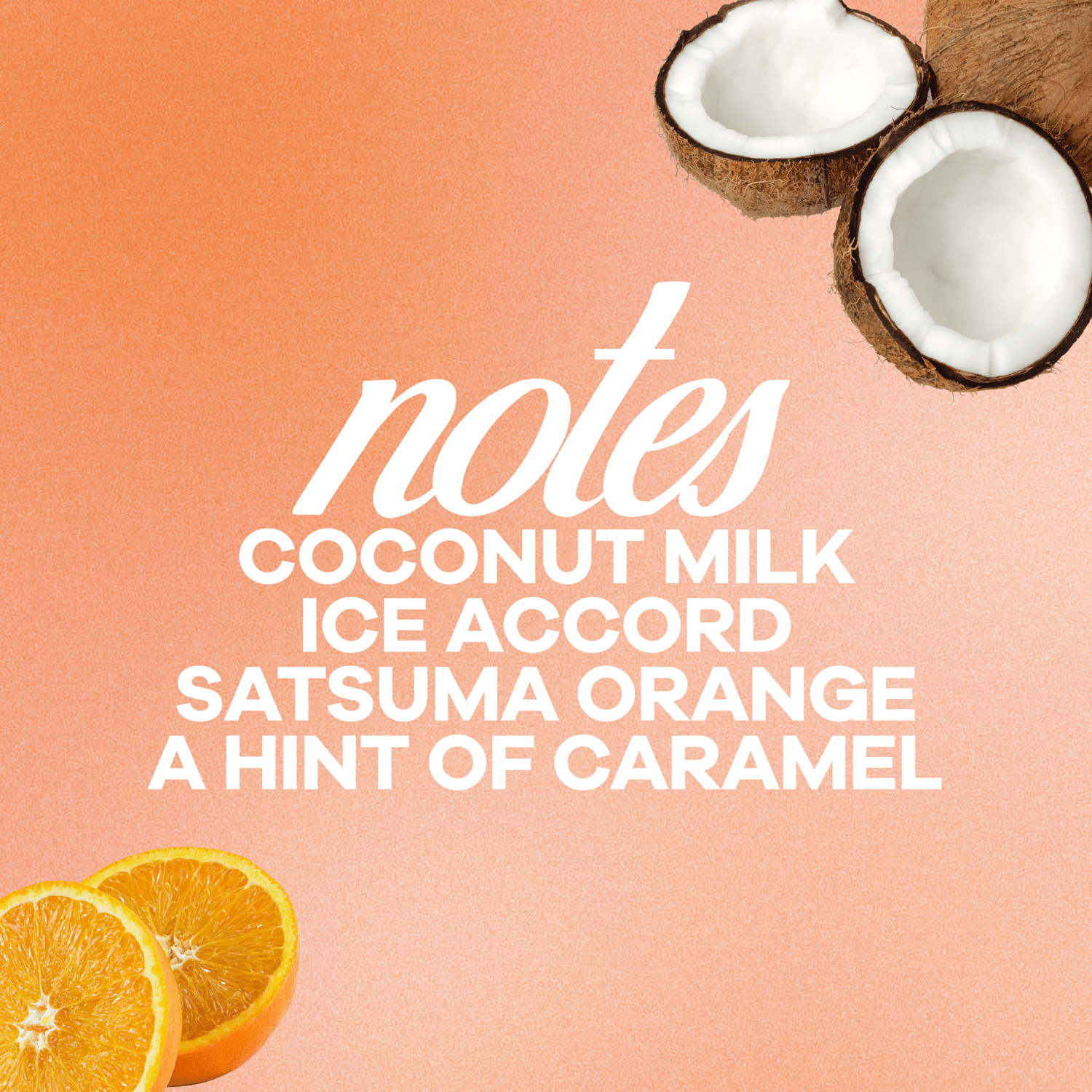 main notes ✢ coconut milk, ice accord, hint of caramel, satsuma orange, warm musk