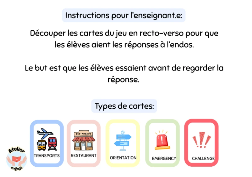 Au lieu de simples exercices, vos élèves vivront des situations réelles : commander un café, demander son chemin, acheter un billet… le tout en anglais!
