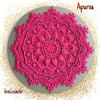 Apurva in Sanskrit means unique. It is a decorative, textured, lace dolly pattern, worked in 27 rounds. A mini version can be created by the end of the 15th round by Woking the edging.