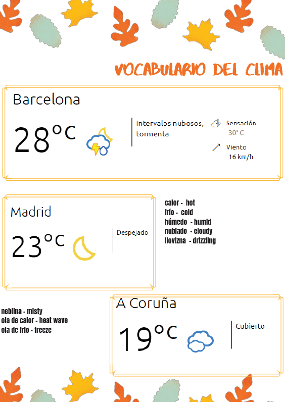 This interactive activity will help you expand your vocabulary related to climate and seasons in Spanish.