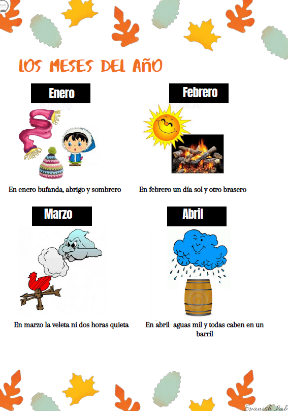 - Familiarizarte con los nombres de los meses y proverbios relacionados