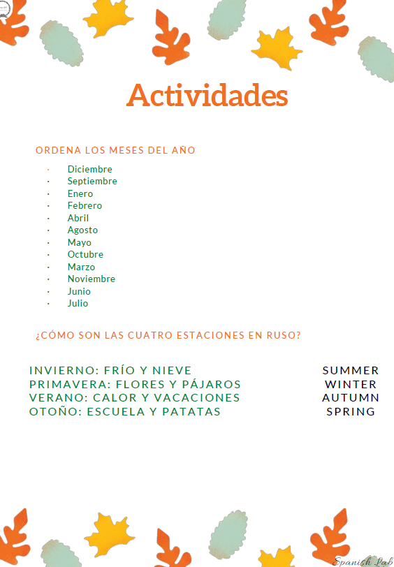 - Names of the seasons in Spanish: spring, summer, fall, winter