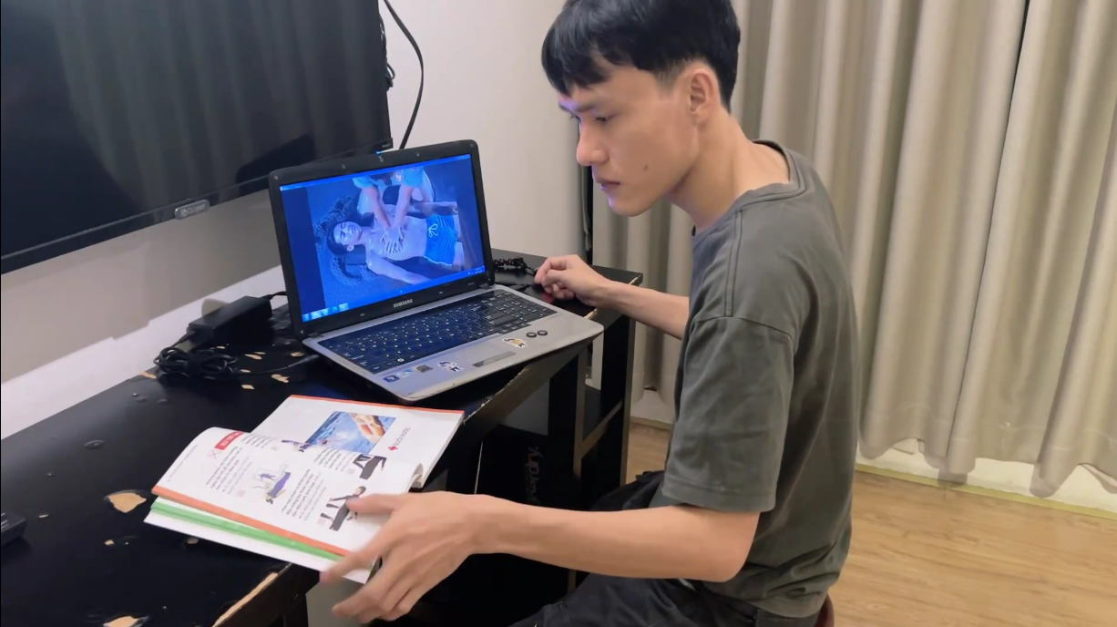 GōngLun sits at his desk late into the night, trying to focus on studying for his upcoming first-aid exam. His laptop plays a CPR training video, but something unexpected captures his attention – the lean, breathless man being resuscitated on screen. The intensity of the scene pulls him in, stirring a curiosity he’s never dared to acknowledge. Lost in imagination, he doesn’t notice TíngHui stepping out of the bathroom, hair still damp from his shower. From behind, TíngHui catches everything – every expression, every flustered reaction – and quietly hits “record” on his phone.
